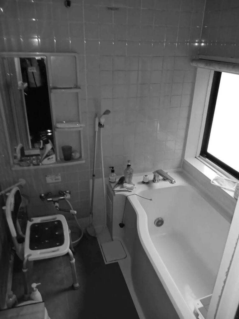 寒さの要因になっていた窓を思い切って塞ぎ、新しく壁になった部分にもぐるりと手すりをつけています。窓を塞いだことによる断熱性アップと安全性を高めるバリアフリー化で、安心して入浴できるお風呂になりました。