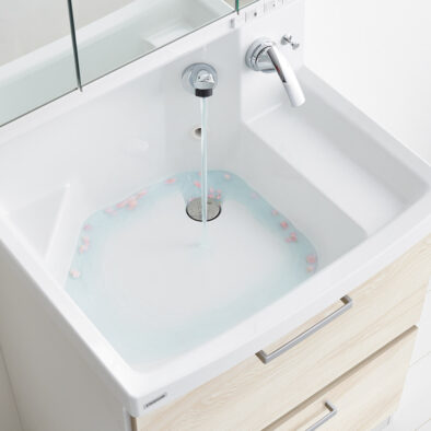 スリムなカウンターにゆったりと使えるボウルが一体化。
