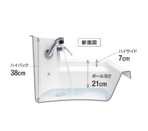ボールの周囲が高いから水ハネを抑えます