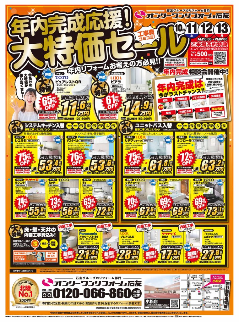 オンリーワンリフォーム石友小松店にて年内完成応援!大特価セールを開催します