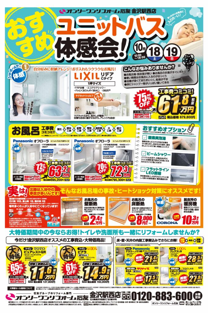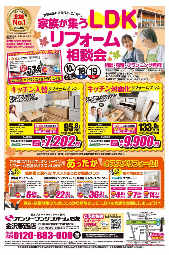 10月18日㈯19㈰にオンリーワンリフォーム金沢駅西店にてイベントを開催します