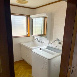 小松店による石川県金沢市Y様邸のリフォーム事例です。12年前に耐震改修工事をさせていただいたお客様です。ご縁あって、再びご依頼いただきました。当時はリフォームして間もなかった洗面台も、12年経過し傷んできており、お取替えとなりました。壁付け水栓で、…